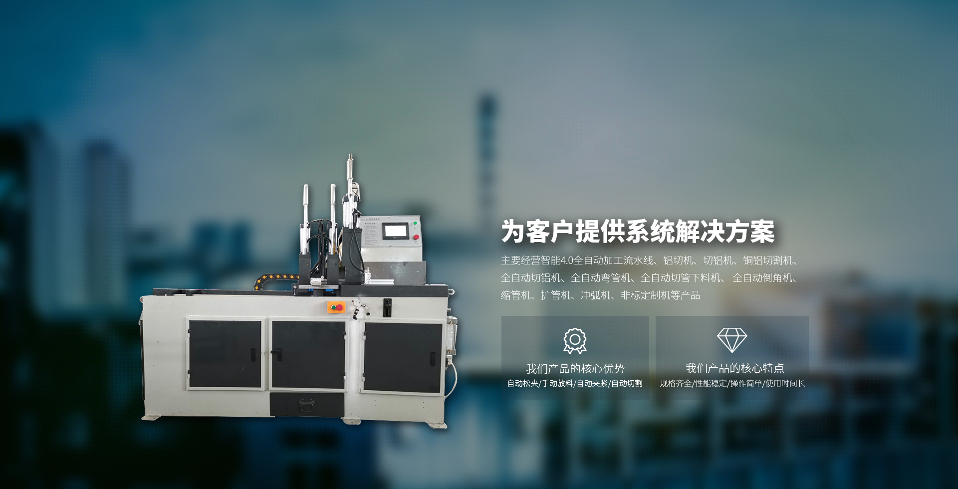 主要經(jīng)營(yíng)智能4.0全自動(dòng)加工流水線、鋁切機(jī)、切鋁機(jī)、銅鋁切割機(jī)、全自動(dòng)切鋁機(jī)、全自動(dòng)彎管機(jī)、全自動(dòng)切管下料機(jī)、 全自動(dòng)倒角機(jī)、縮管機(jī)、擴(kuò)管機(jī)、沖弧機(jī)、非標(biāo)定制機(jī)等產(chǎn)品